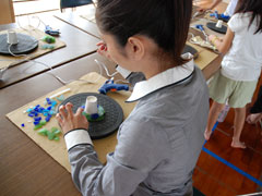 リサイクル琉球ガラスと貝殻のクラフト教室